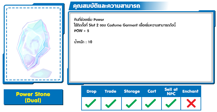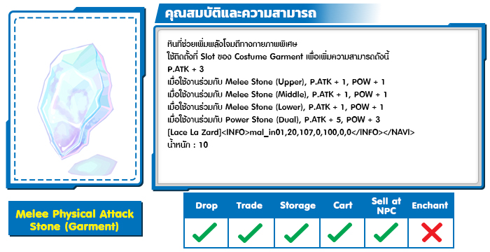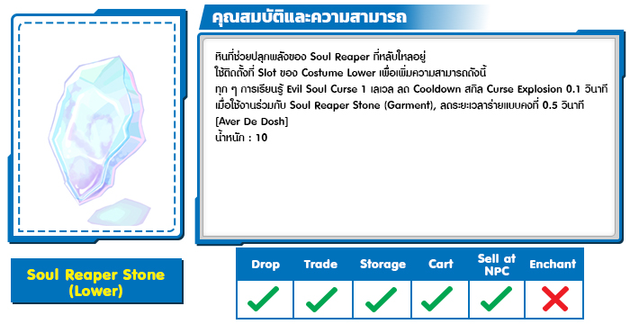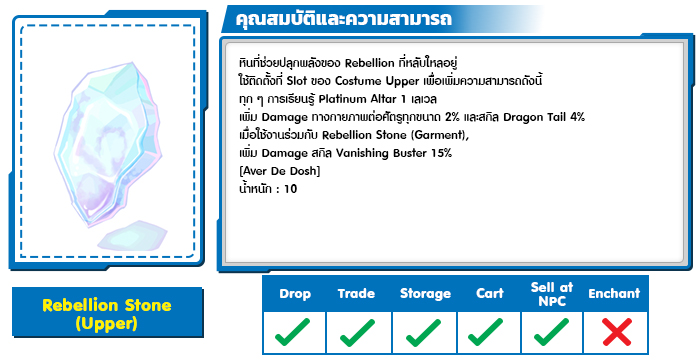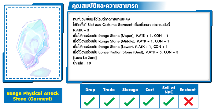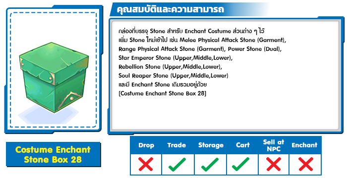 ต่อจากนี้สามารถ Enchant Costume ใน Slot [2] ได้ด้วย Costume Enchant Stone ประเภท Dual