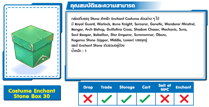 | Costume Enchant Stone Box 30 ไอเทมที่มีโอกาสได้รับ |