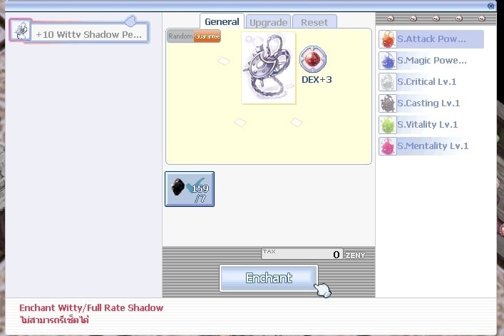 เมื่อเลือกหัวข้อ “Witty & Full Rate Shadow Enchant” ก็จะสามารถเปิดหน้าต่างเสริมพลังขึ้นมาได้